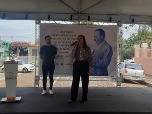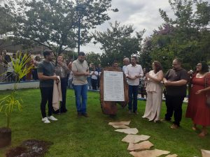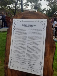 O espaço foi contemplado com a instalação de uma placa com o poema Buriti Perdido, obra-símbolo de sua trajetória, acompanhada do plantio de um pé de buriti, gesto que transcende o simbólico e se torna um marco vivo de memória e continuidade.