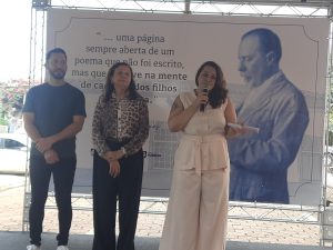 Autoridades locais também participaram do evento, com pronunciamentos do secretário de Cultura, Thiago Venâncio; da diretora da escola, Erci Magalhães; da presidente da Academia de Letras, Daniela Prado; do secretário de Governo, Altanir Júnior; do vice-prefeito, Pedro Adjuto; e do prefeito, Igor Santos.