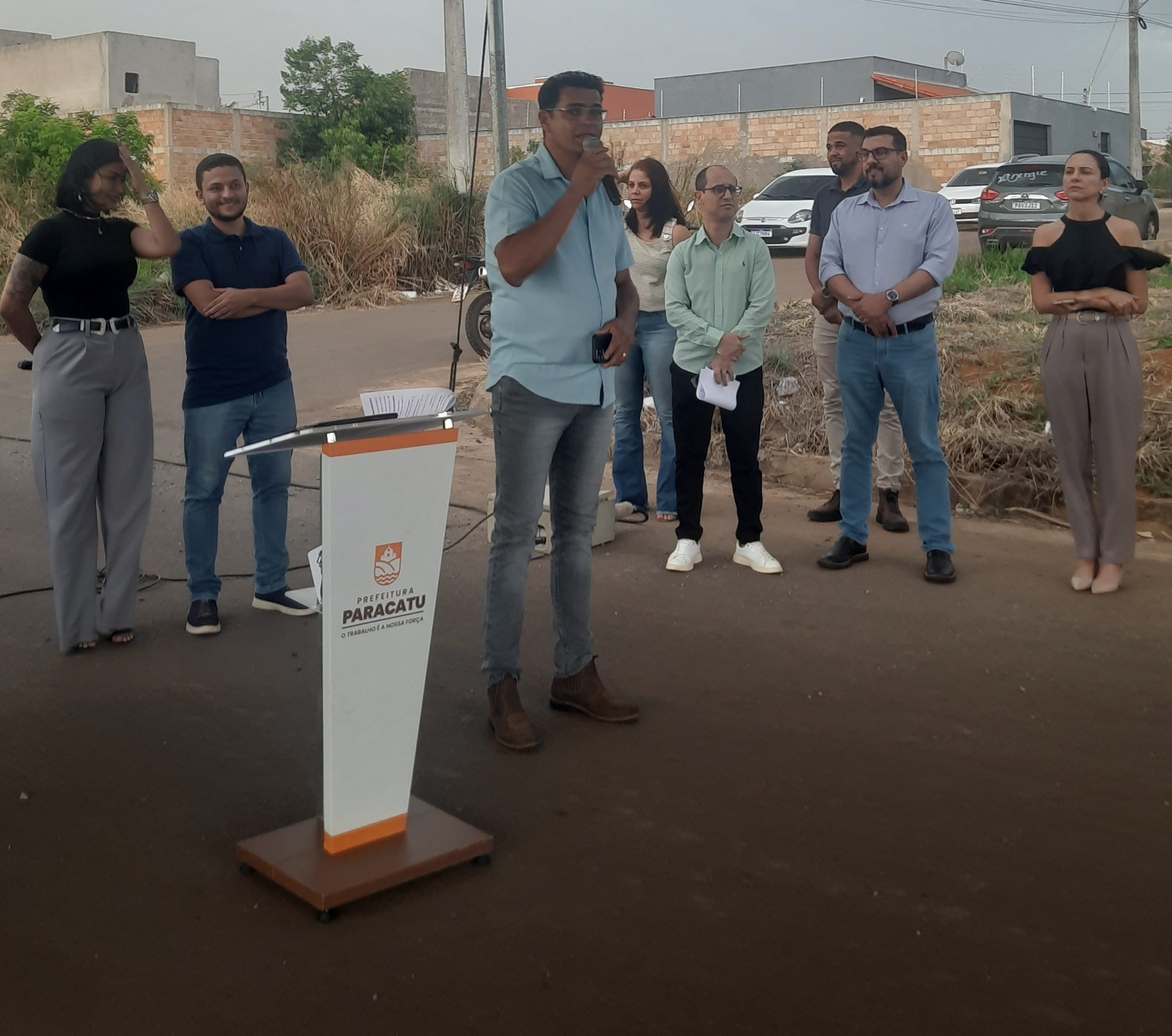 A Prefeitura de Paracatu assinou, na tarde desta quarta-feira, a ordem de serviço para a construção da Unidade Básica de Saúde (UBS) do Jardim Vitória. A cerimônia, realizada sob uma chuva muito esperada, símbolo de renovação para o bairro, contou com a presença do prefeito Igor Santos; do vice-prefeito Pedro Adjuto; do secretário de Governo, Altanir Júnior; do secretário de Saúde, Umarques Couto; do presidente do bairro, Gabriel Araújo; do vereador Wesley Ribeiro; além do vereador Ernesto Silva, requerente da obra, e do vereador Geisiel, proponente do nome da unidade em homenagem ao Dr. Maximiniano Aubert Correa.