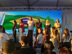 A solenidade reuniu autoridades e representantes de instituições comprometidas com a causa. Estiveram presentes o prefeito Igor Santos; a secretária municipal da Mulher, Igualdade Racial e Juventude, Maria José Brandão; a presidente do Instituto Banco Vermelho, Andréa Rodrigues; a vereadora e presidente do Conselho da Mulher, Sara Diniz; a presidente do Conselho da Mulher, Jenifer Blat; e a delegada da Mulher, Luciene Akemi. A união de vozes e olhares reforçou o caráter coletivo da iniciativa: o enfrentamento à violência contra a mulher é responsabilidade de toda a sociedade.