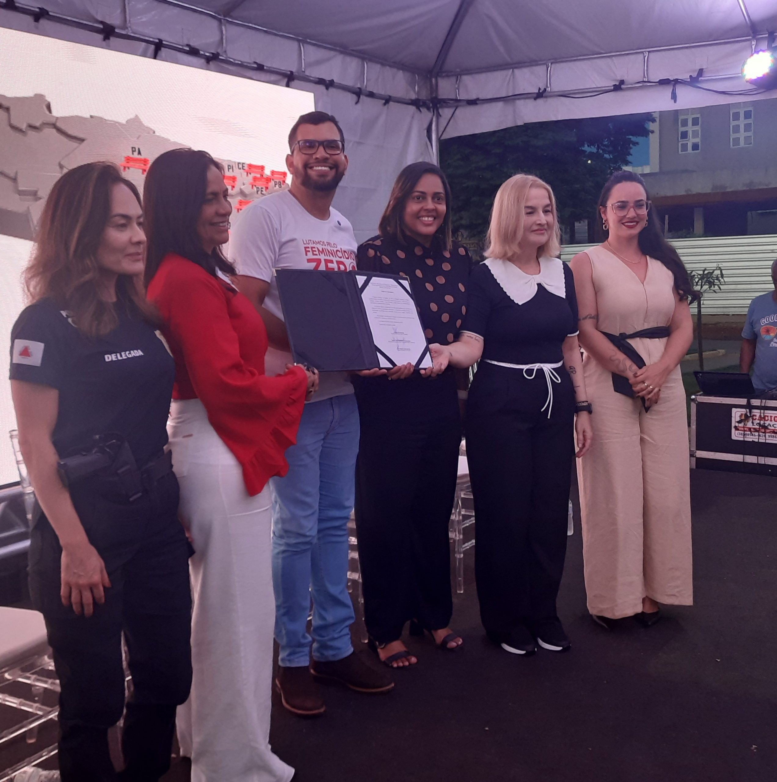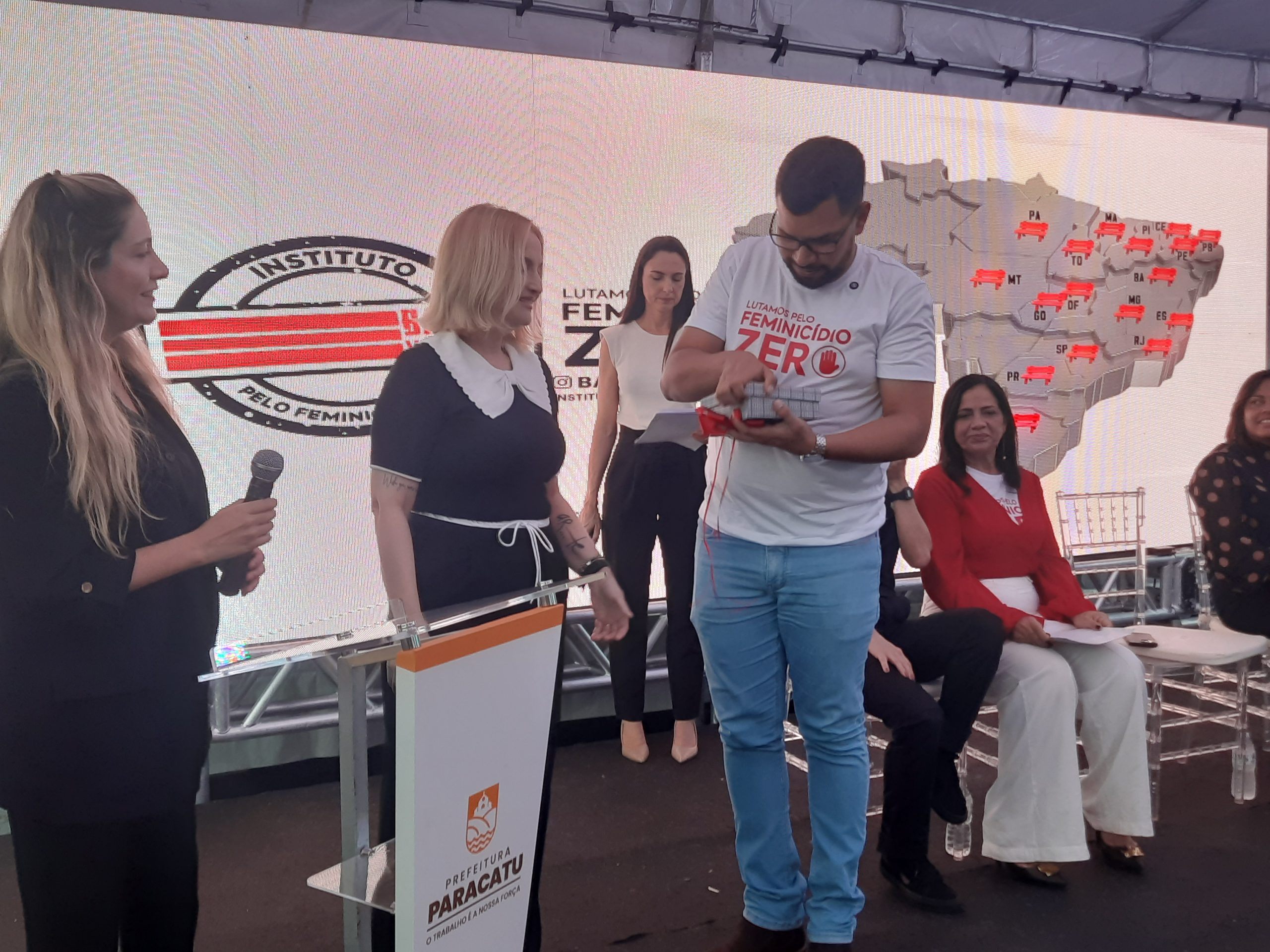 A solenidade reuniu autoridades e representantes de instituições comprometidas com a causa. Estiveram presentes o prefeito Igor Santos; a secretária municipal da Mulher, Igualdade Racial e Juventude, Maria José Brandão; a presidente do Instituto Banco Vermelho, Andréa Rodrigues; a vereadora e presidente do Conselho da Mulher, Sara Diniz; a presidente do Conselho da Mulher, Jenifer Blat; e a delegada da Mulher, Luciene Akemi. A união de vozes e olhares reforçou o caráter coletivo da iniciativa: o enfrentamento à violência contra a mulher é responsabilidade de toda a sociedade.
