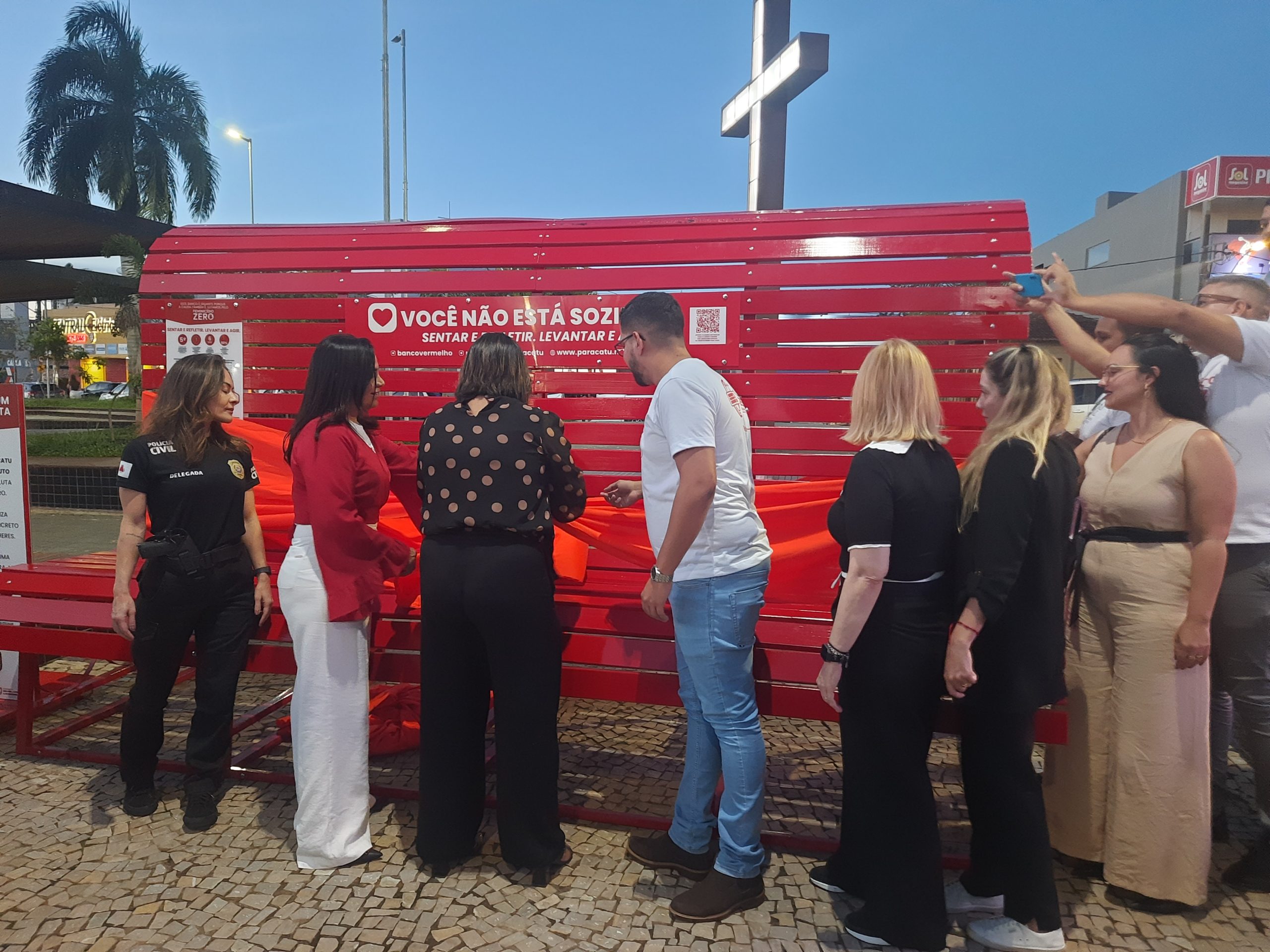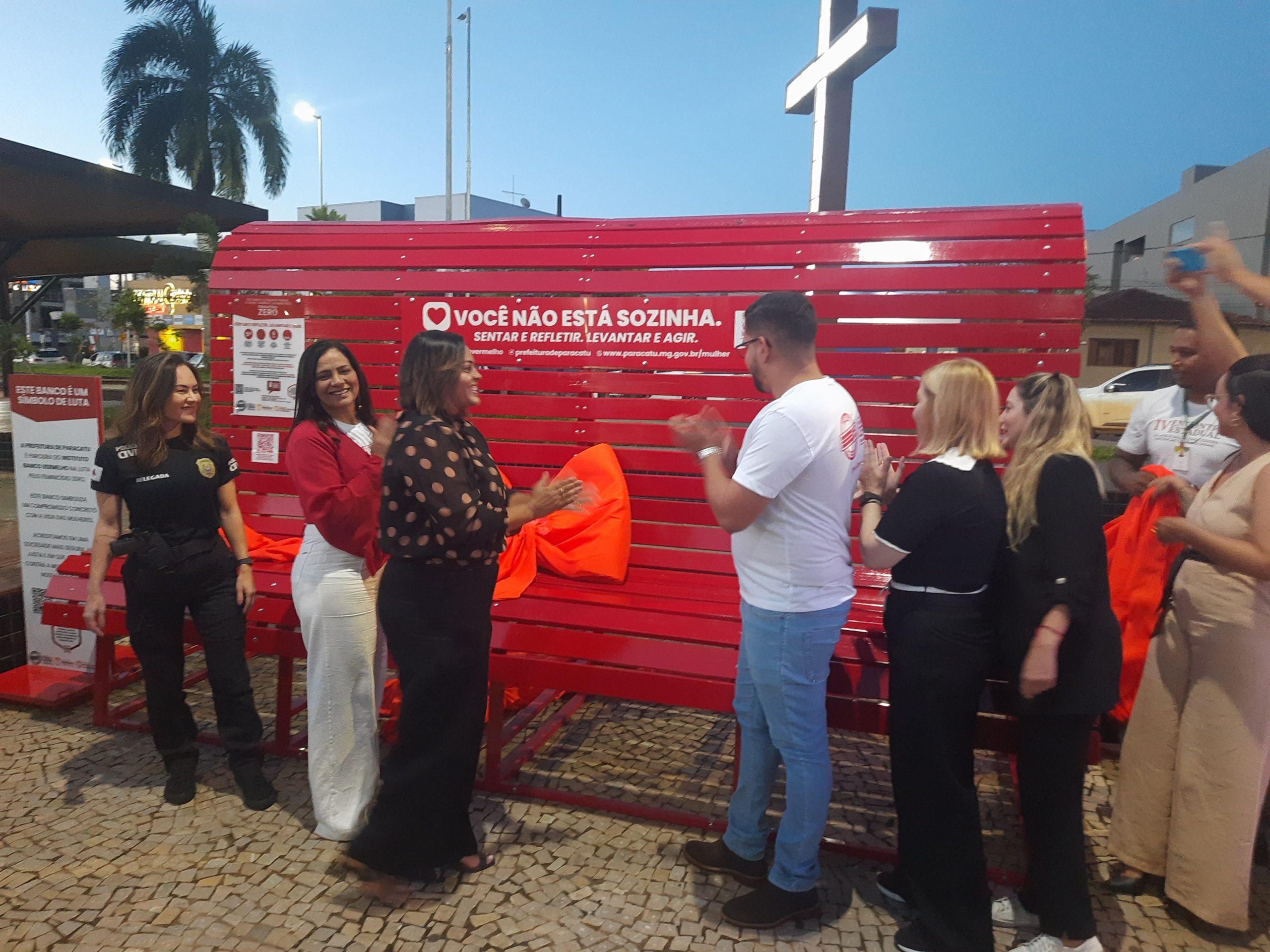 Na tarde luminosa desta segunda-feira, 26 de janeiro, quando o céu azul parecia testemunhar cada gesto e o sol se punha devagarinho, Paracatu escreveu uma página significativa em sua história de luta pelos direitos das mulheres. Na Praça Firmina Santana, ponto de encontro e convivência da cidade, foi inaugurado o primeiro Banco Vermelho gigante de Minas Gerais, um marco visível, intenso e impossível de ignorar.
