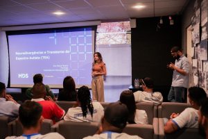 A psicóloga Ana Jéssica Gonçalves reforçou a importância do tema: “Abordamos especificamente o transtorno do espectro autista, justamente para devolver à comunidade, para representantes, para quem está à frente dos projetos, um pouco mais de conhecimento para gerar inclusão e para lidar também com a nossa população neurodivergente”.