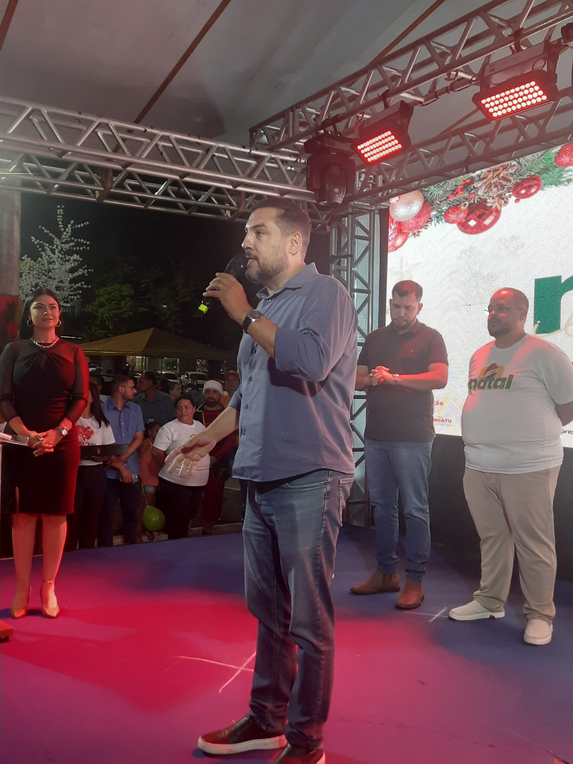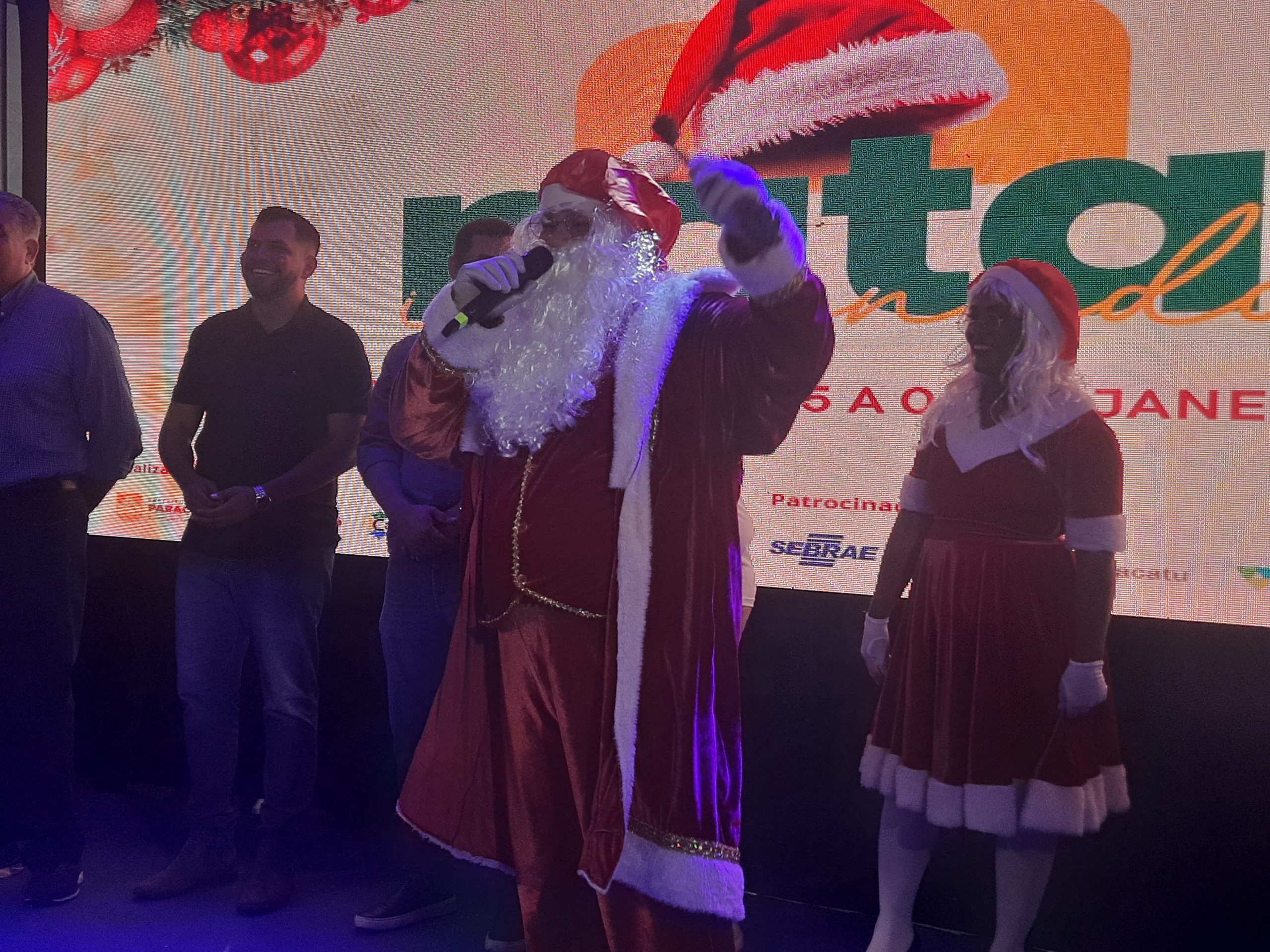A cerimônia reuniu o prefeito Igor Santos, o vice-prefeito Pedro Adjuto, o secretário de Turismo Igor Diniz e o presidente da Associação Comercial e Empresarial de Paracatu, Marcos Plauto, além de famílias e visitantes que encheram a praça em uma só vibração: a da esperança renovada pelo Natal.