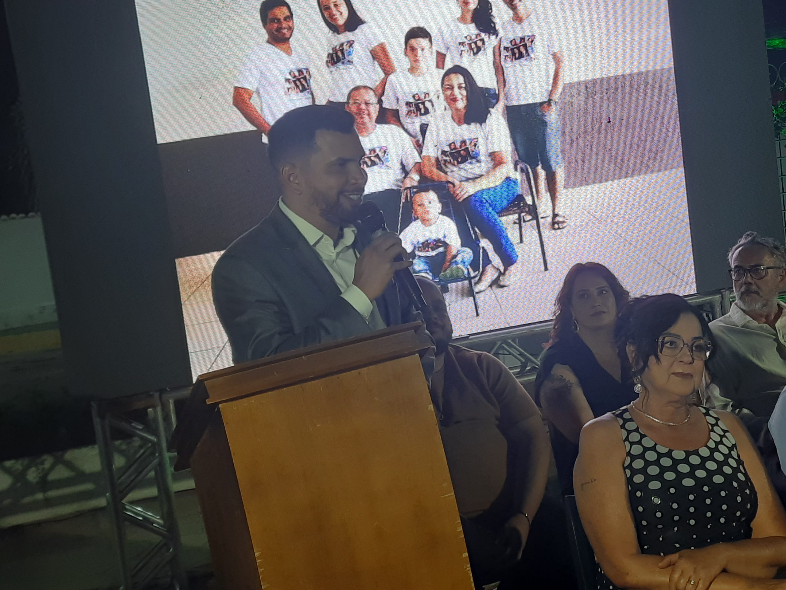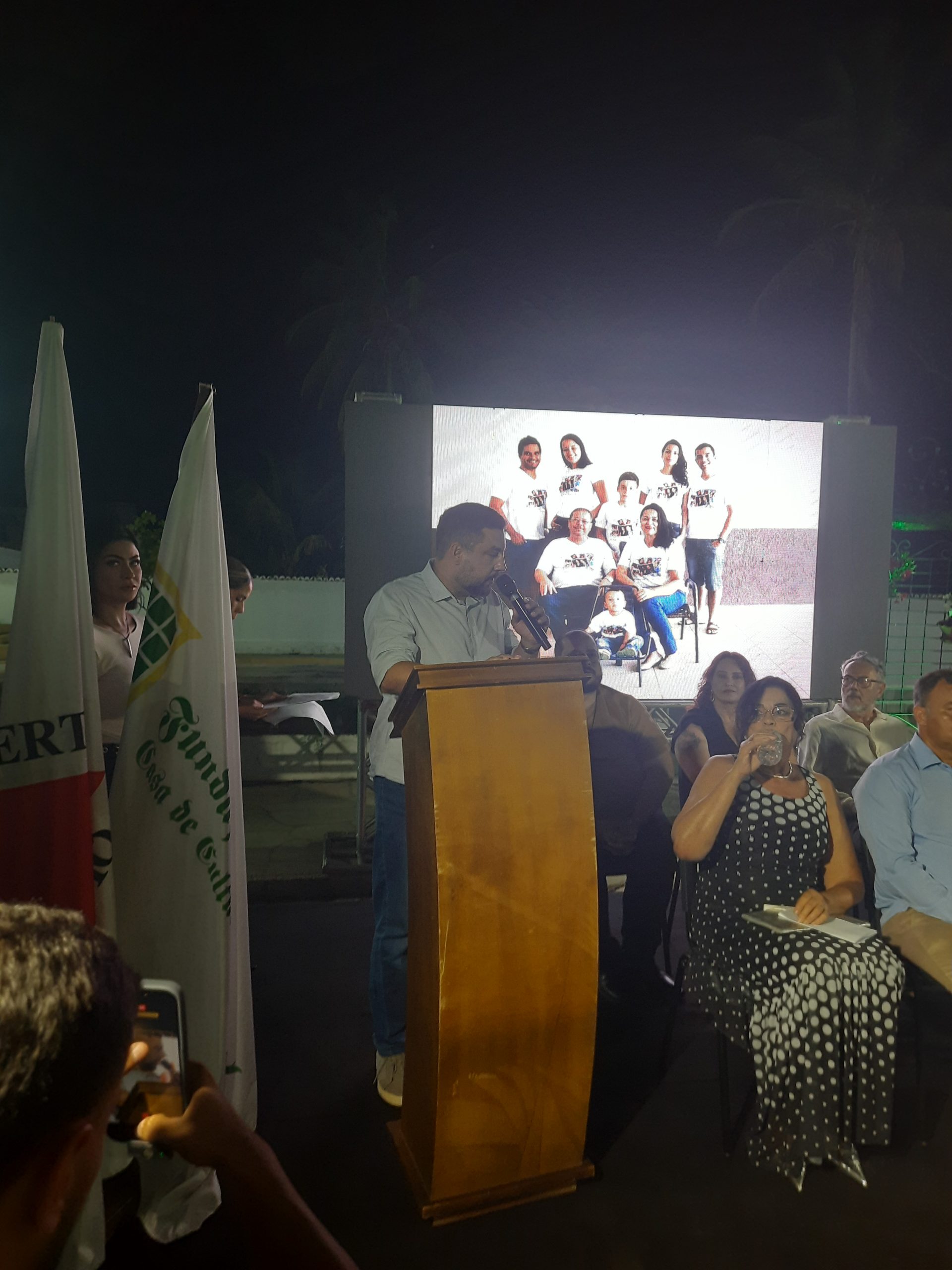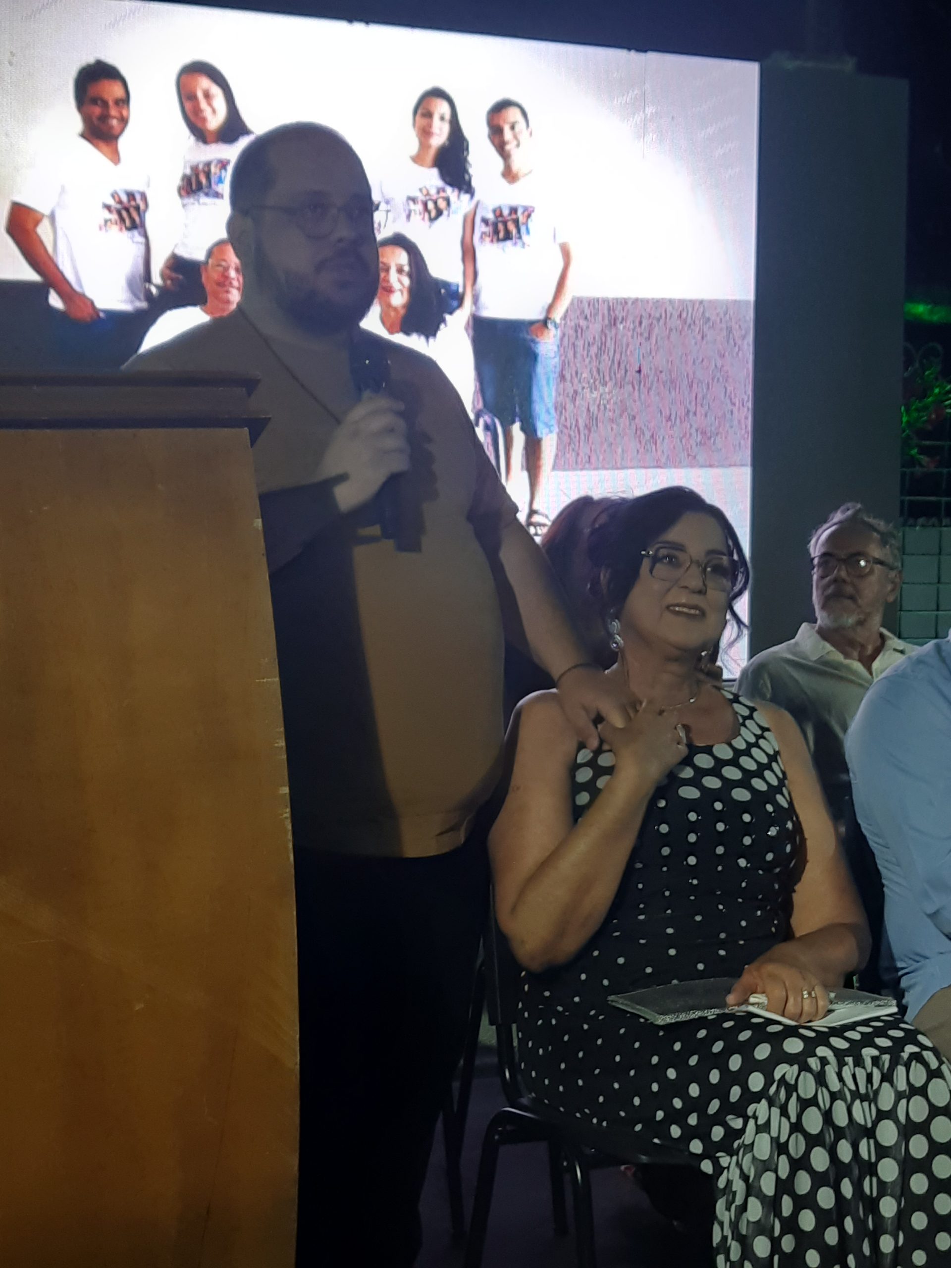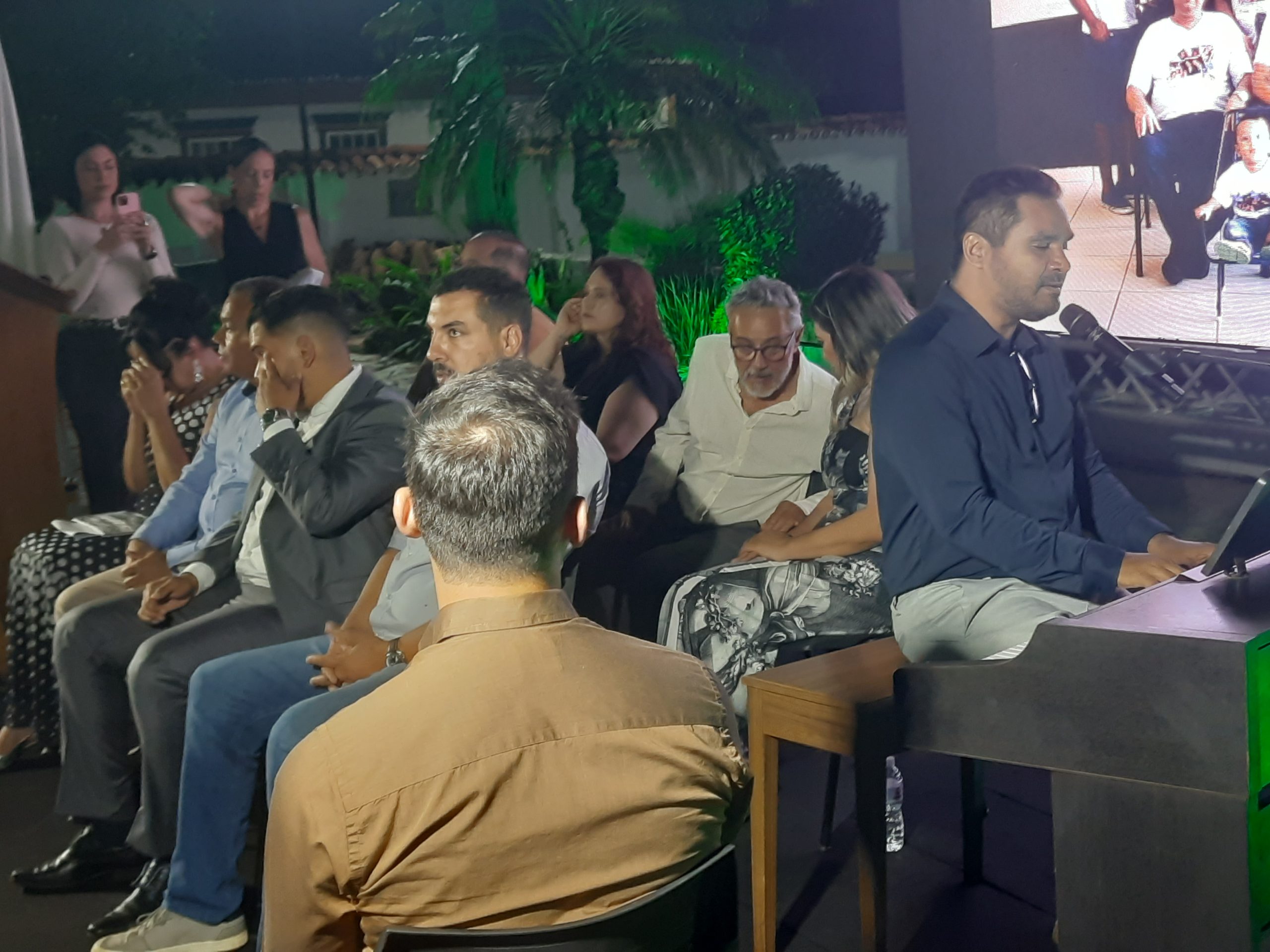 Compuseram a mesa o prefeito Igor Santos, o vice-prefeito Pedro Adjuto, o presidente da Câmara Municipal, Manoel Alves, a representante da Casa de Cultura, Janine Souto, o secretário municipal de Cultura, Thiago Venâncio, o secretário de Turismo, Igor Diniz, o presidente do Conselho do Salão de Fotografias, Max Ulhoa, e a presidente da Academia de Letras do Noroeste de Minas, Dra. Daniela Prado. Representando o homenageado, esteve presente a esposa, Ruth Brochado Ferreira, que recebeu, em meio a aplausos comovidos, o reconhecimento da cidade que seu companheiro tanto amou.